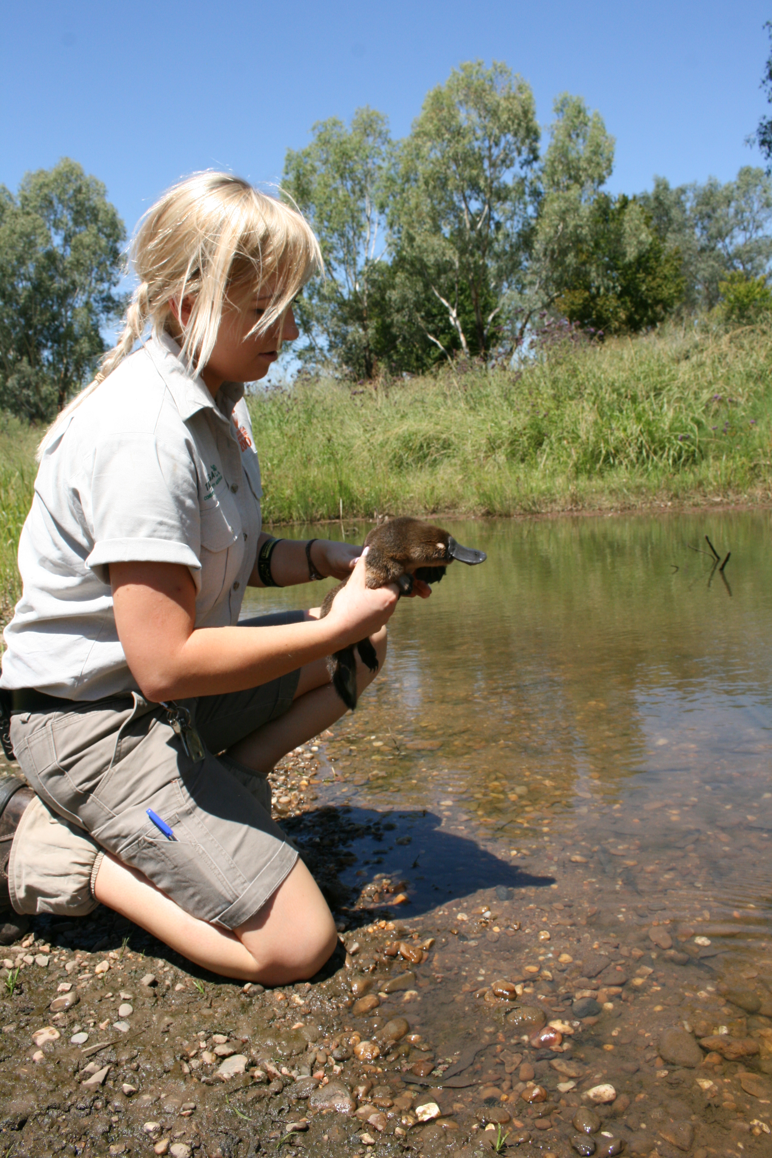 The veterinarian conducted a health assessment on the Platypus, which revealed it was a female and in good health. Veterinary staff think she may have gone up the stream to the golf course during the recent rains and then was unable to find her way back to the river.